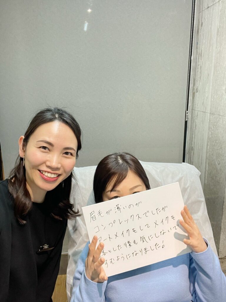 眉毛が薄いのがコンプレックスでしたが、アートメイクをしてメイクを落とした後も気にしないですむようになりました!